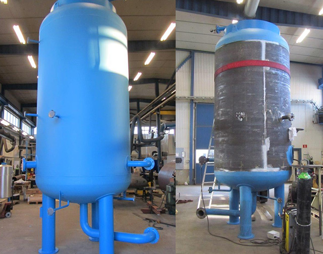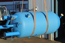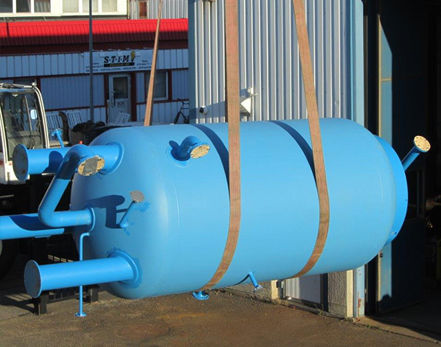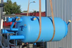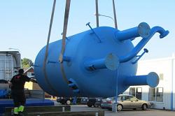 Elektrisk ångpanna med diameter på 2000 mm, mantelhöjd 3000 mm och med en totalhöjd på 6000 mm. Mantelns tjocklek är 25 mm och ångpannan har provstrycks med 42 bar.